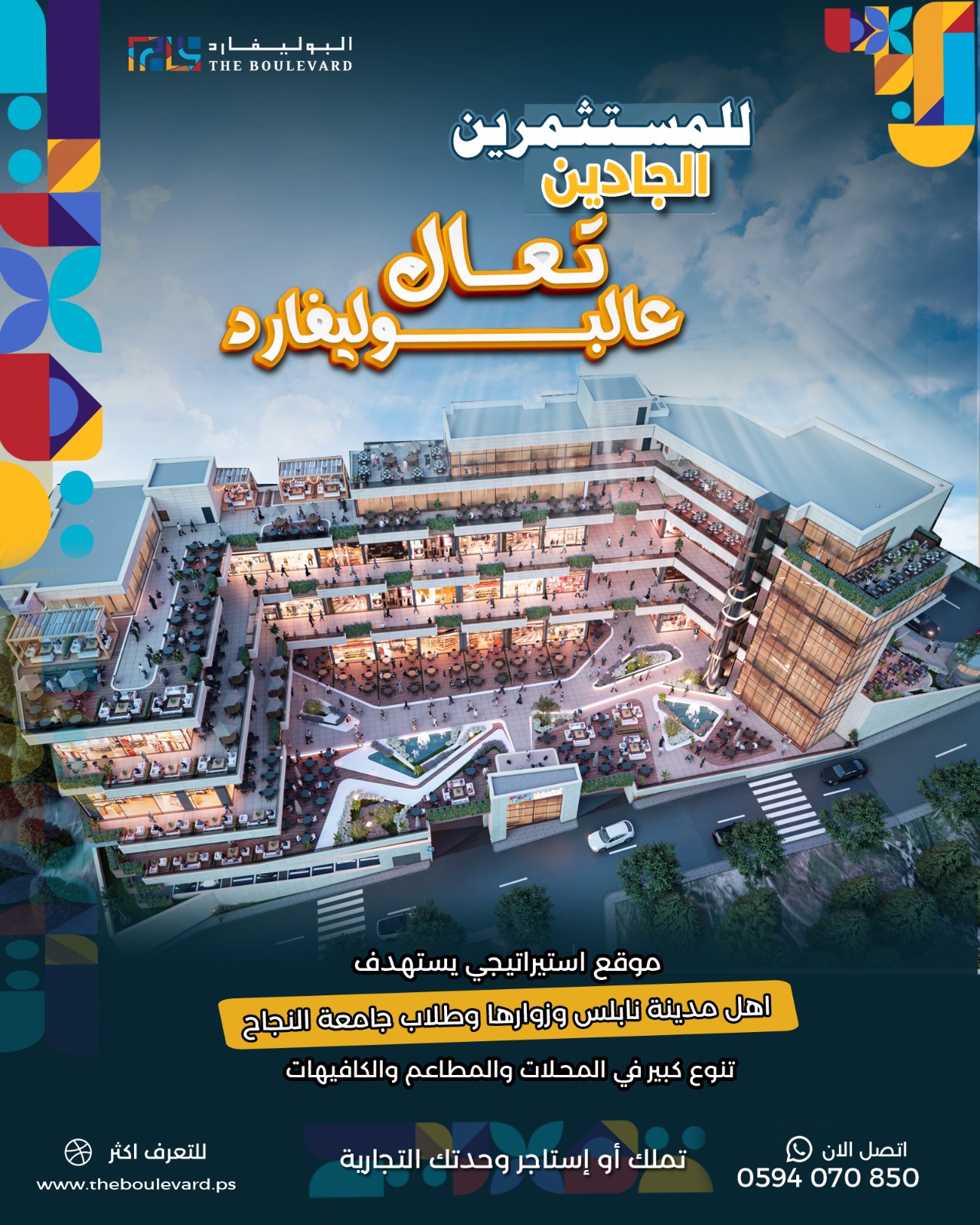 محاذي لاقرب منطقة حيوية في نابلس (حرم جامعة النجاح الجديد)